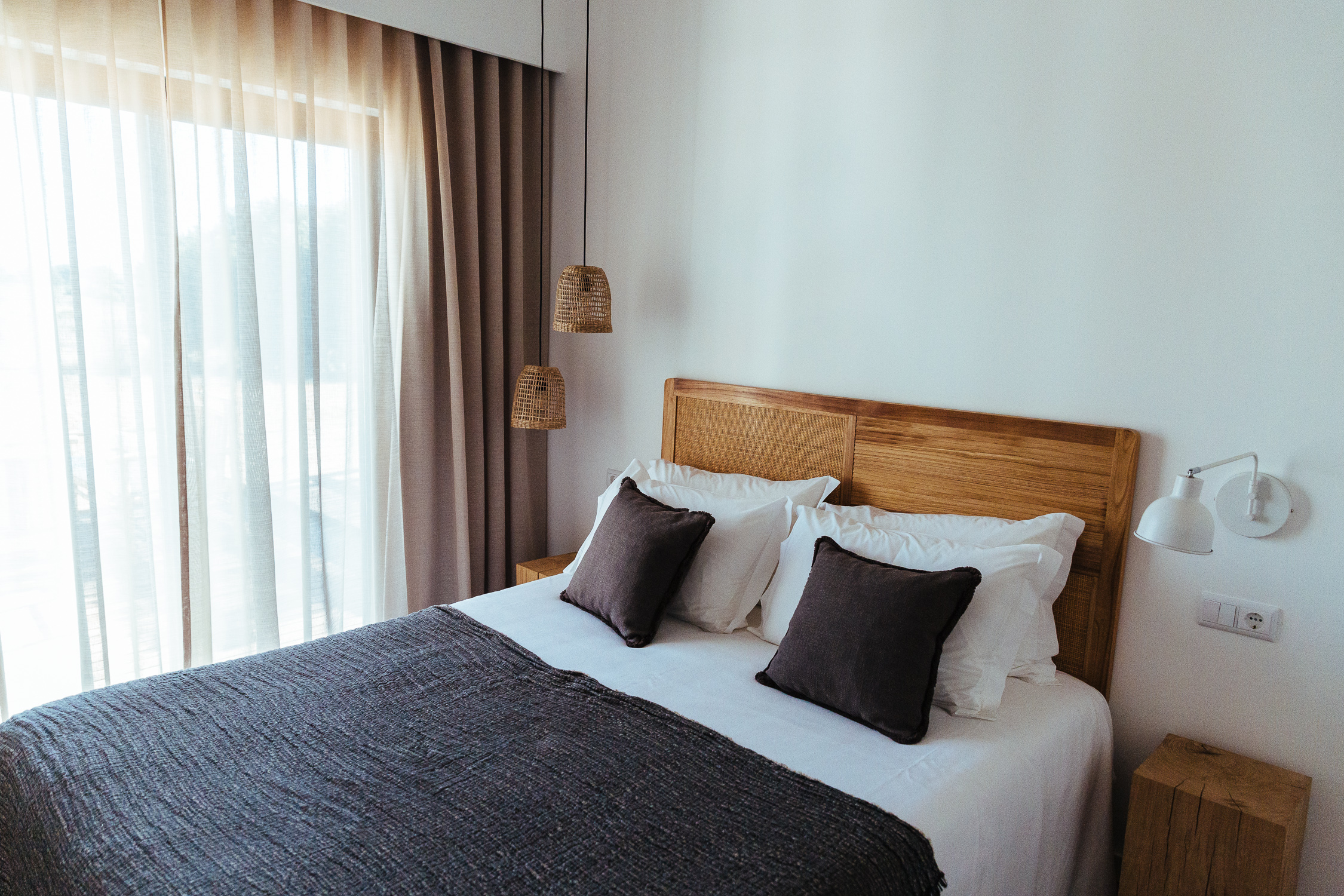 These houses were designed to provide comfortable stays for its guests. With 45m2, this accommodation option stands out for its simplicity and elegance. They have a double bedroom, a bathroom with shower, a kitchen and a living room with a sofa bed. You can also enjoy a table and an outdoor living room so you can have your breakfast or have a barbecue at sunset. In the case of using the sofa as a bed, it adds an additional €15 per child (maximum two children up to 13 years old).